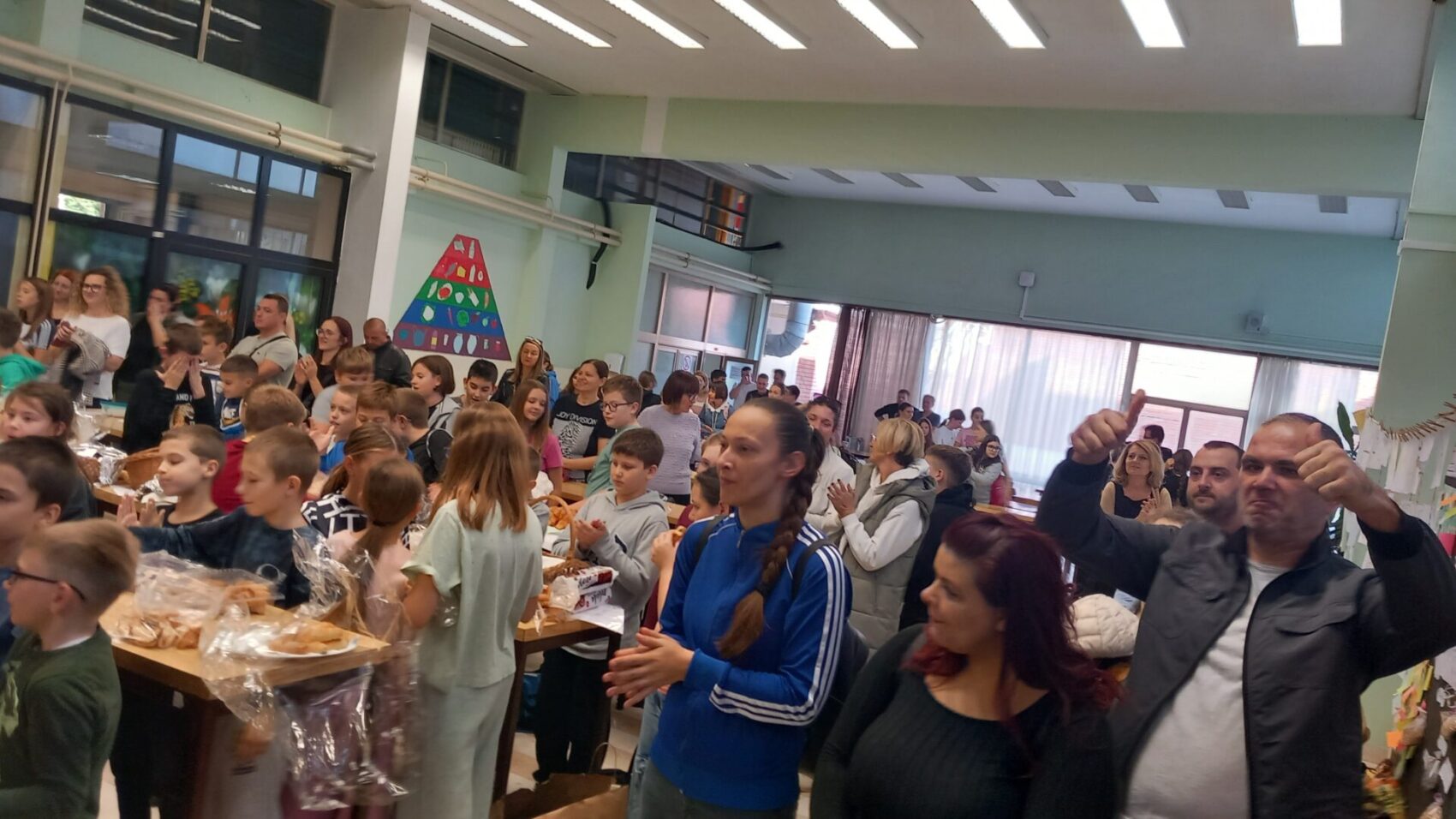 Učenici su tijekom prijepodneva donosili mirisne kiflice, perece, kruhiće, slatko i slano za nepce. Sve su pripremali kod kuće sa svojim mamama i bakama. Stolovi su bili puni kao i cijeli hol škole svih uzrasta u radosnom raspjevanom ozračju.