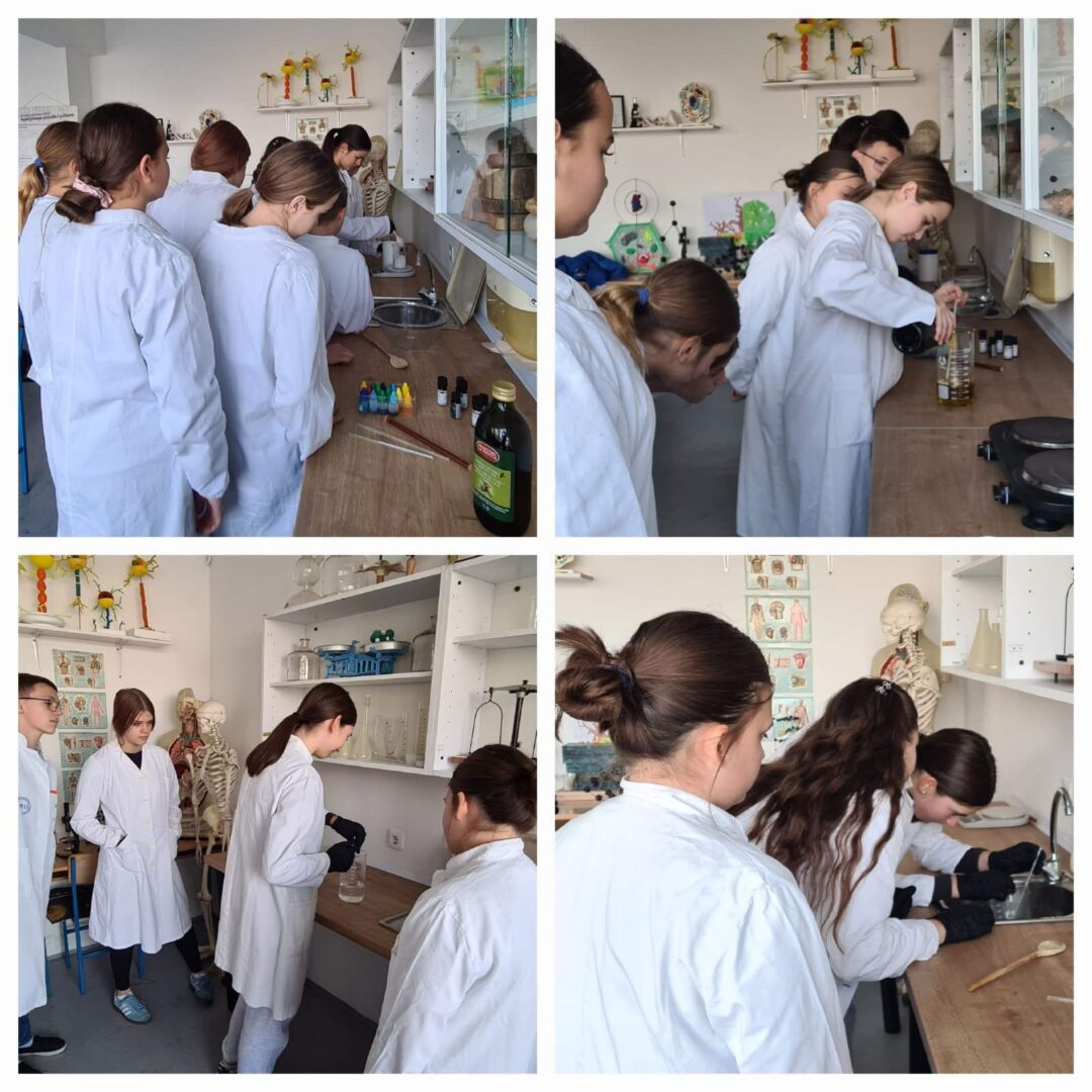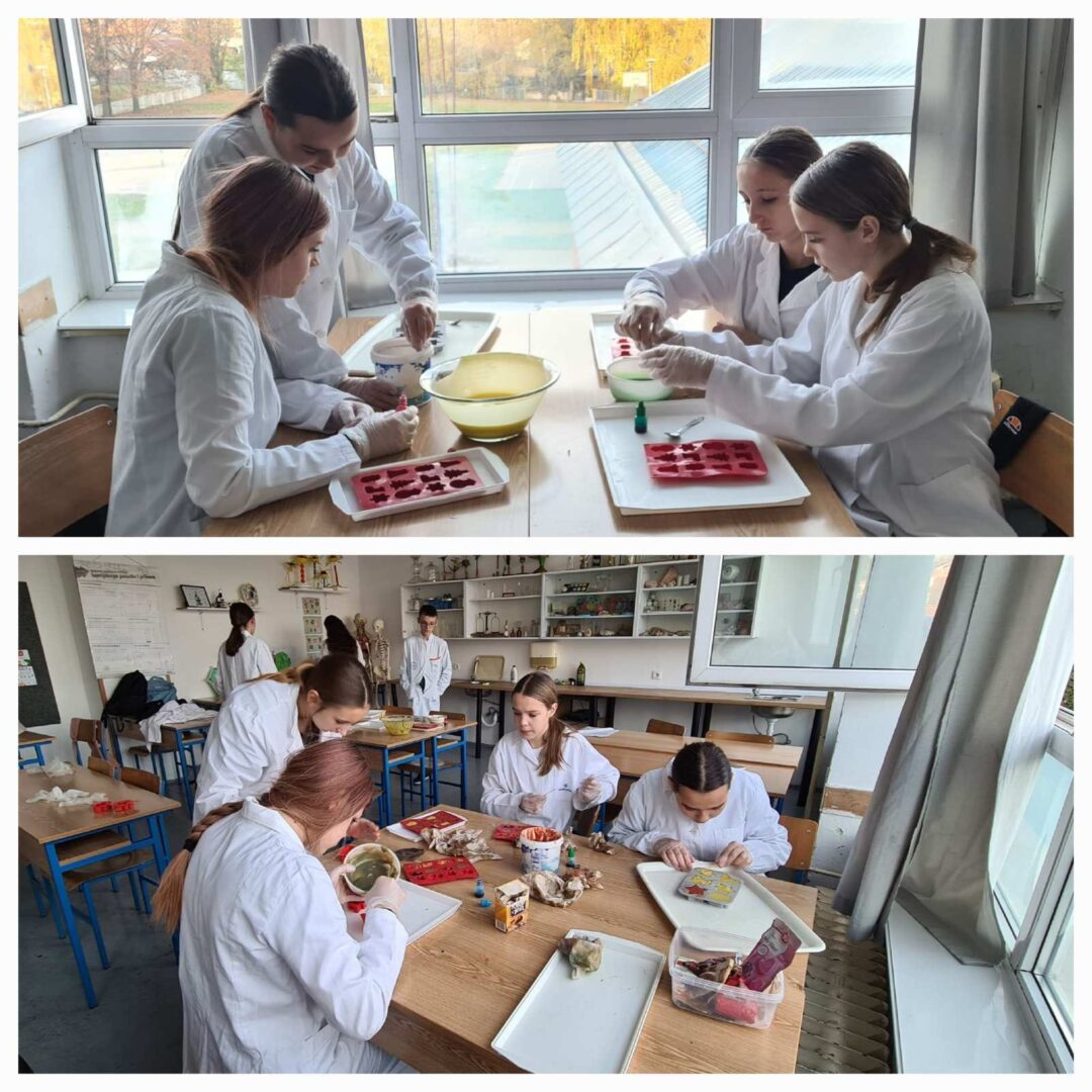 Dana 13. studenog 2025. mlade kemičarke 8. a i 8. b razreda, uz mentorstvo svoje nastavnice kemije Tajane Barna, održale su kreativnu radionicu za učenike 7. a razreda tijekom koje su zajedno izrađivali mirisne domaće sapune.
