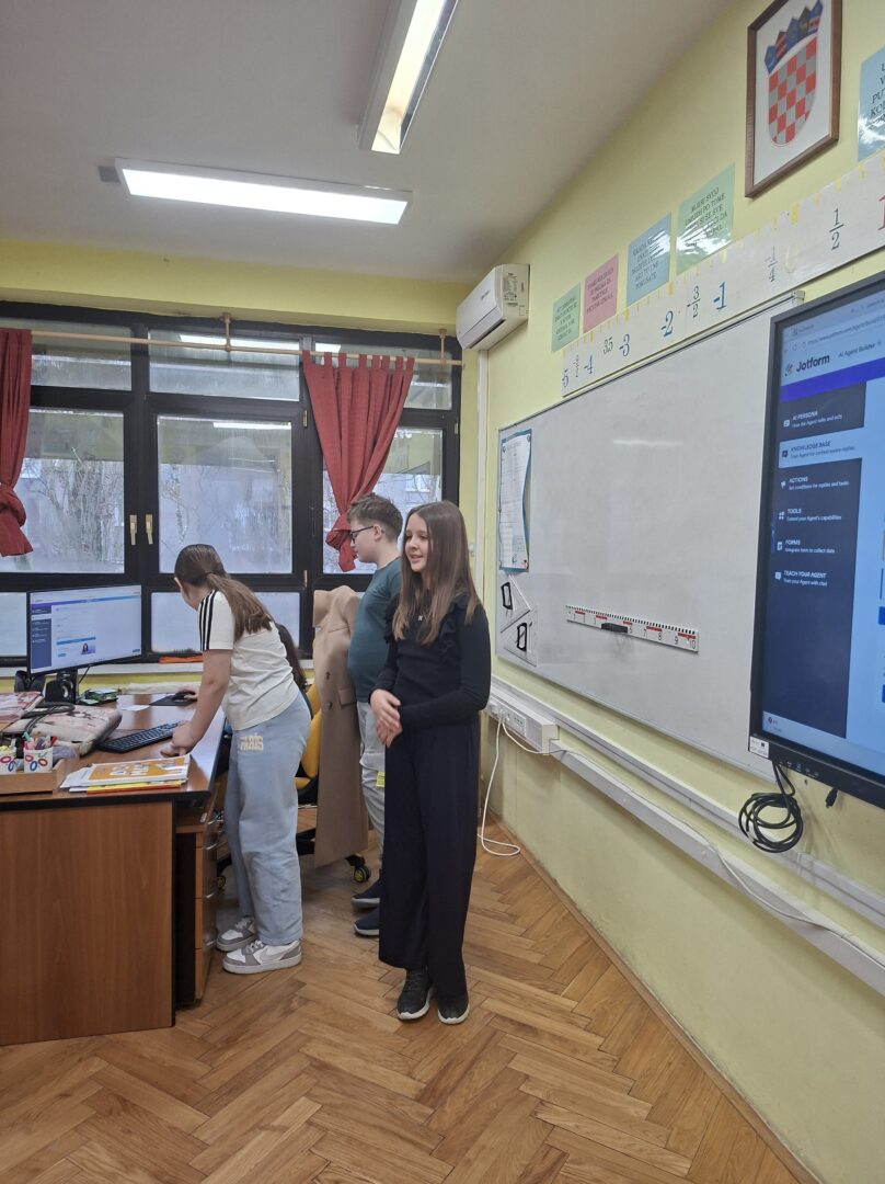 U sklopu projekta BrAIn, učenici petog razreda koji pohađaju izvannastavnu aktivnost o umjetnoj inteligenciji, predstavili su svojim vršnjacima kako se u aplikaciji Jotform može izraditi specijalizirani AI agent za učenje. Nastavnica Tihana Kraml Kanaet, koja vodi spomenutu izvannastavnu aktivnost, učenike je uvela u svijet suvremenih digitalnih alata i odgovorne uporabe umjetne inteligencije.