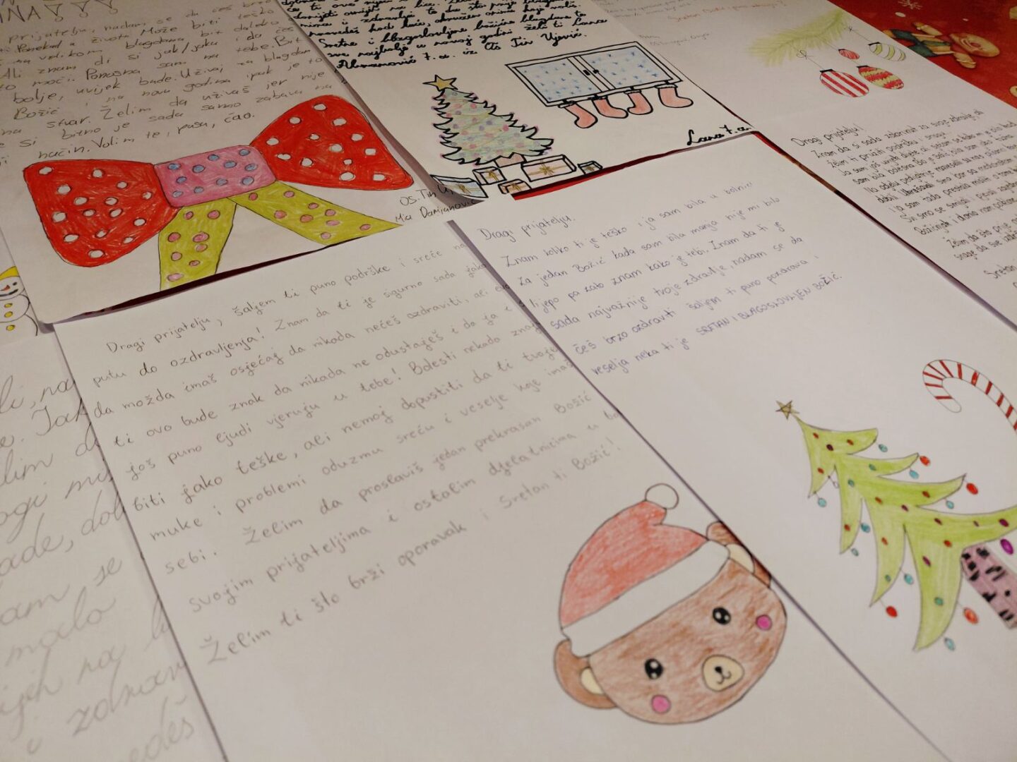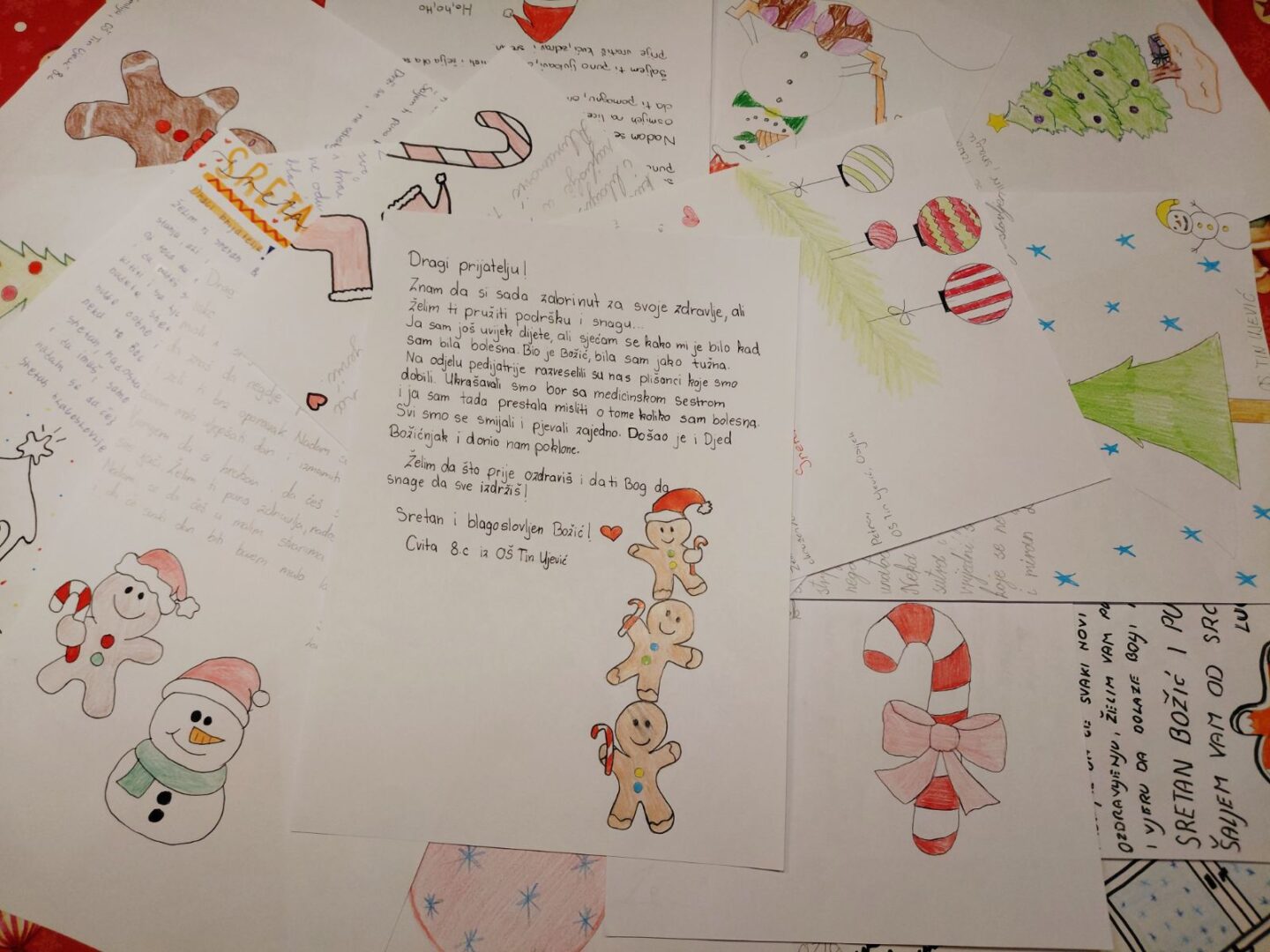 Pregršt dječjih pisama razveselilo je pacijente KBC Osijek. Učenici 7.i 8. razreda, uz mentorstvo nastavnice Andreje Opačak, pisali su pisma i božićne čestitke kako bi usrećili one koji su u bolnici. Policajci velikog srca iz Udruge Ipa, organizirali su podjelu božićnih paketića za Odjel dijalize. Ovo je bila još jedna u nizu suradnji OŠ “Tin Ujević” i Udruge MaDi. Od srca zahvaljujemo i predivnoj sestri Tihani Lovrić koja je podrška i snaga svim ljudima koji se svakodnevno bore za vlastiti život. Hvala svim divnim sestrama i liječnicima s odjela. Neka ih dragi Bog sve vodi i blagoslovi, a pacijentima da snagu i jakost da izdrže svaki izazov.