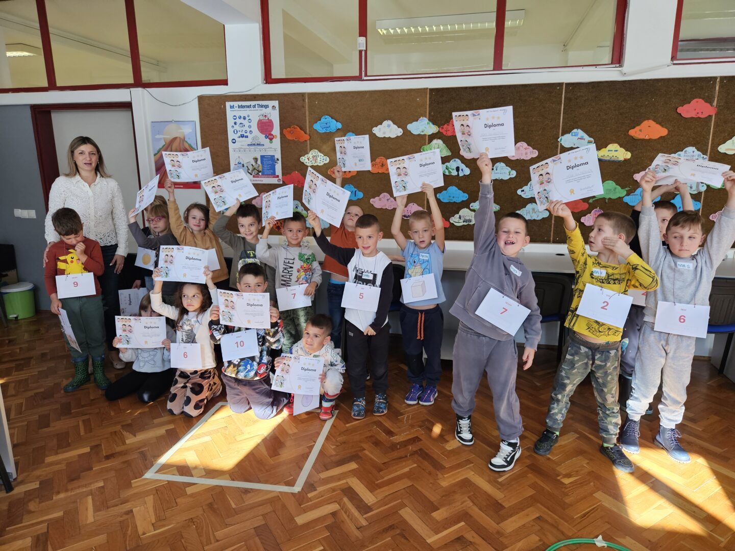 Tihana Kraml Kanaet i Dunja Kasač su autorice radionice“ Matematički svijet oblika i brojeva” čiji je cilj bio razvijanje sposobnosti prepoznavanja i razvrstavanja geometrijskih likova i brojeva kroz igru, pokret i kreativnost. Radionica je imala za ciljem poticanje prepoznavanja osnovnih geometrijskih likova i tijela te brojeva od 1 do 10 kroz igru i pokret. Djeca su izrađivala vlastite kartice s oblicima određene boje te kartice s brojevima na koje su crtali količine. Aktivnosti su uključivale razvrstavanje po boji, obliku i veličini, plesne igre, matematičku stazu i timske zadatke. Radionica je potaknula na kreativnost, suradnju i motoričke vještine.