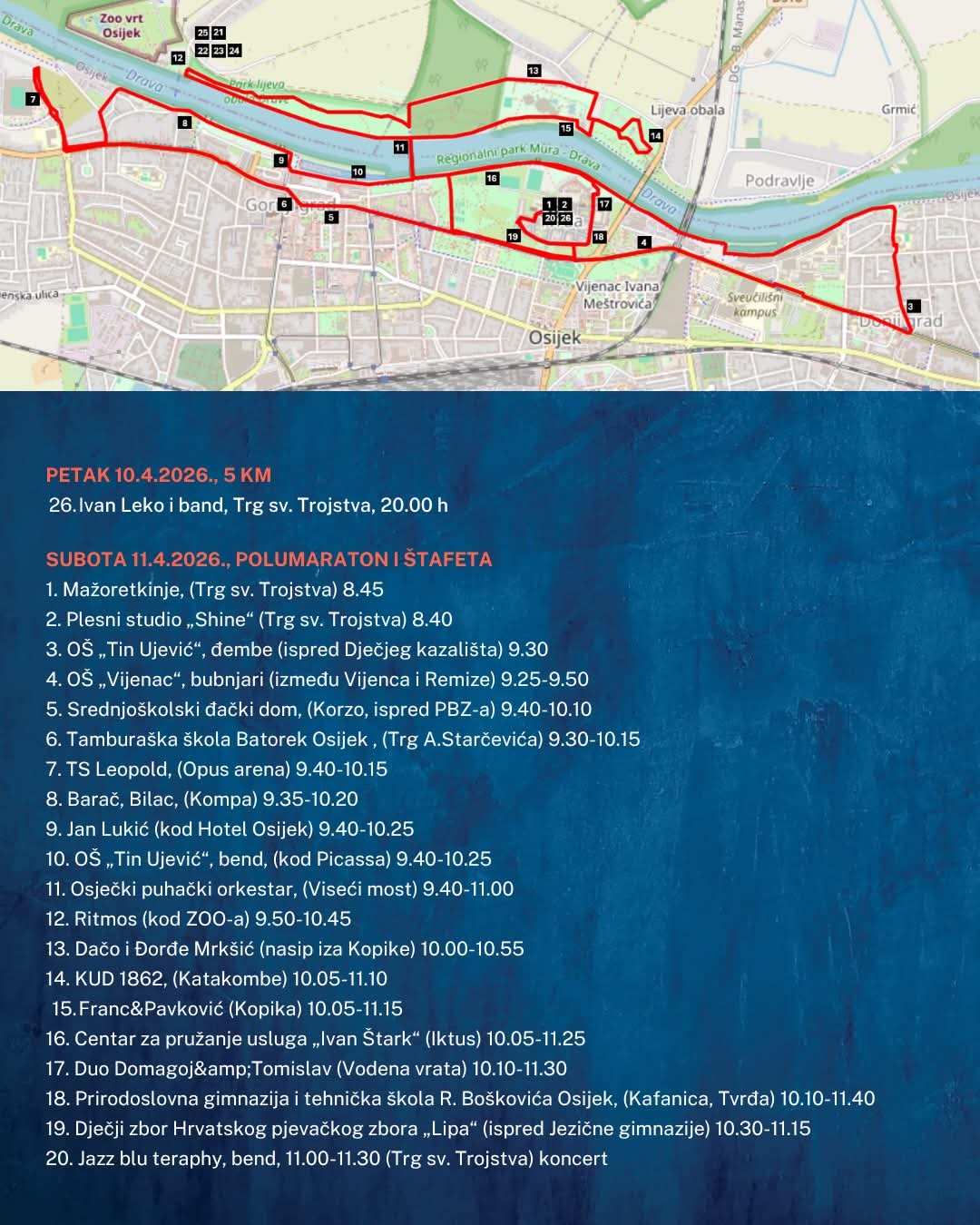 U subotu, 11. travnja 2026., mali su bubnjari sudjelovali na Osječkom Ferivi polumaratonu, gdje su svojim bubnjevima bodrili brojne trkače duž staze. Njihovi snažni i ritmični udarci davali su dodatnu motivaciju sudionicima utrke, stvarajući poticajno i veselo ozračje.